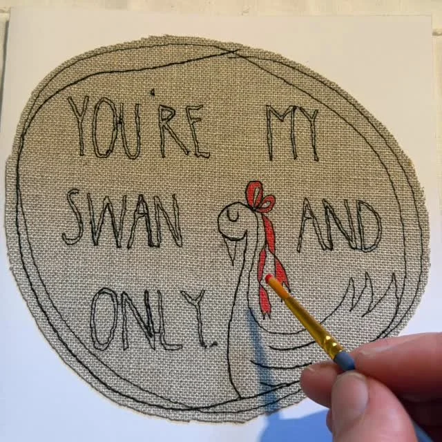 Stitched to order on a lovely flax linen tea towel (50cm x 70 cm) and price includes postage.